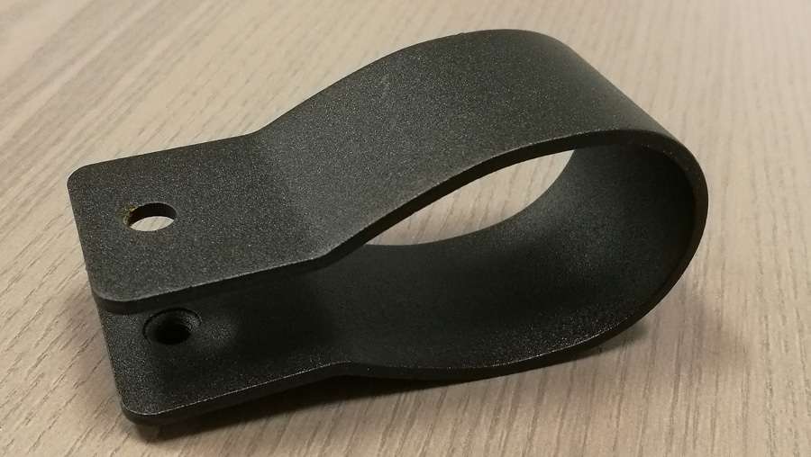 Accessoiremontage voor KammBar. Een montagelocatie voor een M6-bout die naar achteren wijst. Een gelaste M6-moer is vooraf gemonteerd. Het is noodzakelijk om met enige vorm van afstandsstuk in de opening aan te vullen om goed aan te spannen.