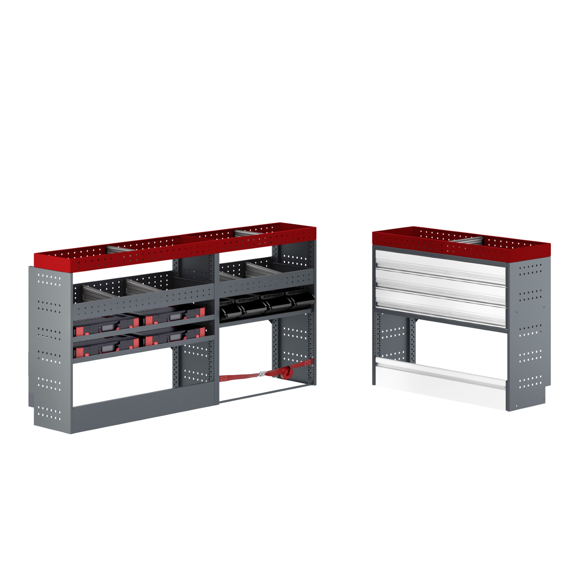 • 1 legplaat met KLT-dozen voor overzichtelijke opslag van